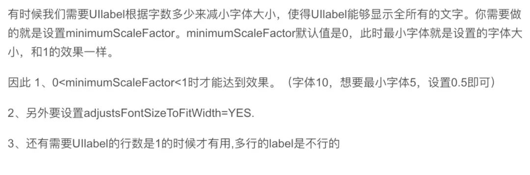 总结一下,开发中很少会用到adjustsFontSizeToFitWidth,大多数时候都会顶部对齐、换行、裁剪,或设置自动高度。