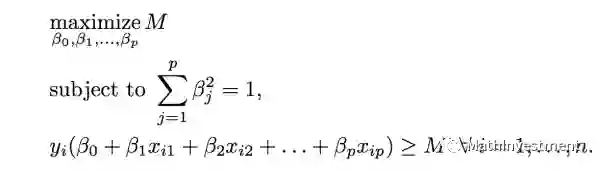 M是某一个正值,这样也就给两边都增加了缓冲区,使得两边的点距离这条线的距离全部都大于M,并且我们希望这个M的值越大越好。(因为M的值越大,说明两边离这条线的距离最近的点越远,也就保证了其他所有点都会离得更远)