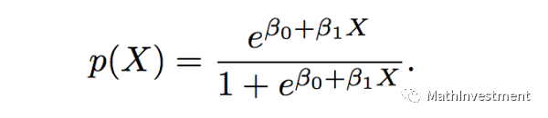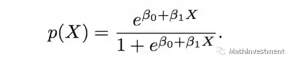 这样就保证了p(X)只会属于0到1这个区间。如果对于这个推导过程不熟悉的,可以自行任意带入负无穷到正无穷间的值取代上述方程中𝛃0+𝛃1·X的位置,检查概率p(X)是否都是落在0到1这个区间。如果发现不是,那么恭喜你,你颠覆了数学,我请你吃饭,管饱~