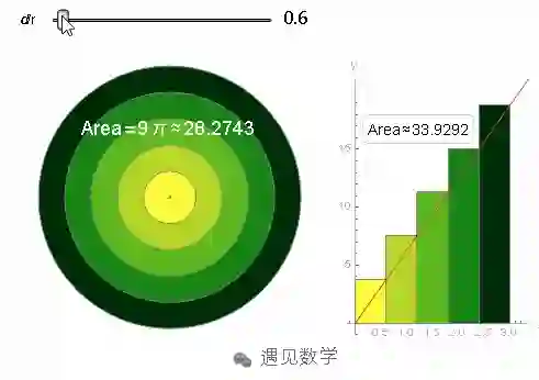 以一个简单的几何问题开始: 求圆的面积,通过把圆的面积分成一系列的圆环, 最后推导出其公式, 以此来窥见微积分的三个中心思想: 积分, 微分以及两者互逆.