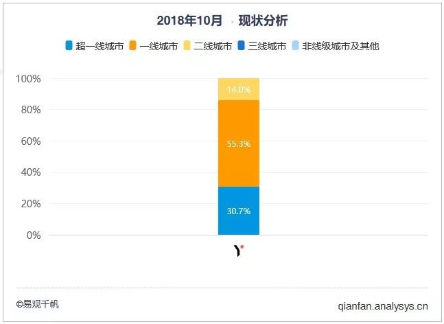 2018年10月份,衣二三用户一线城市占比达55.3%,超一线城市占比达30.7%。可以看出一线城市的用户在尝鲜体验上,呈现出更大的开放性。