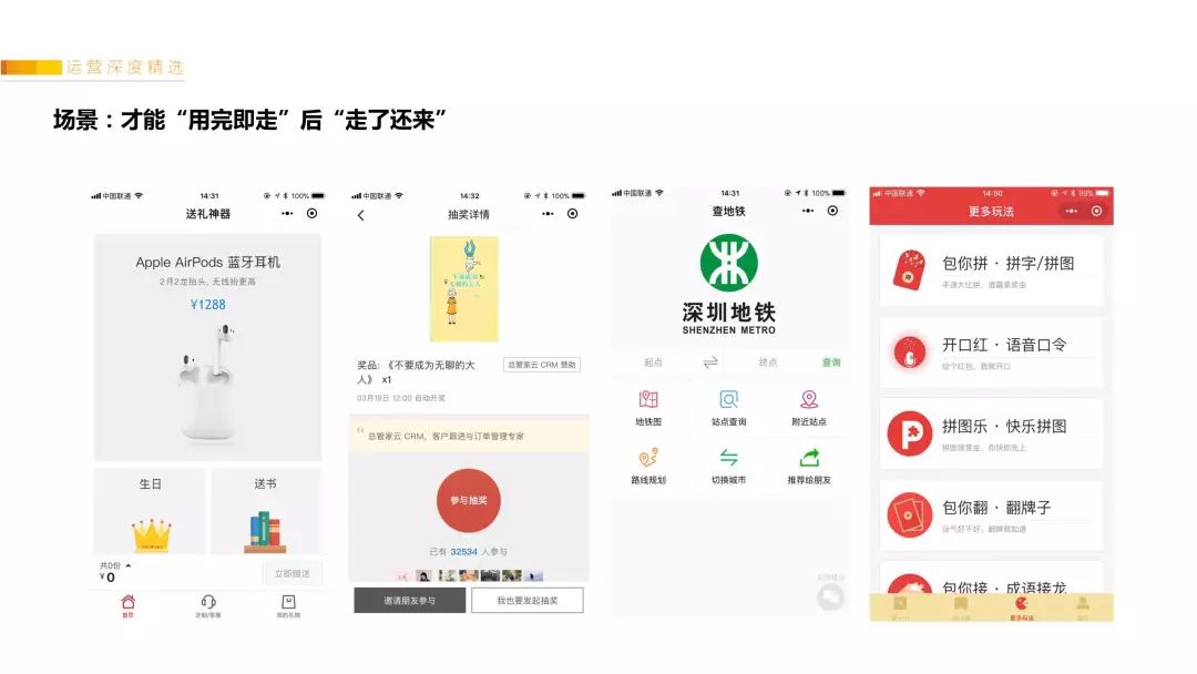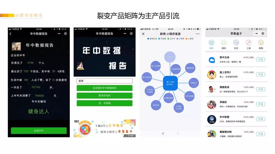 接下来选了我们做的4个案例,和大家说一下打造爆款小程序的实操流程。