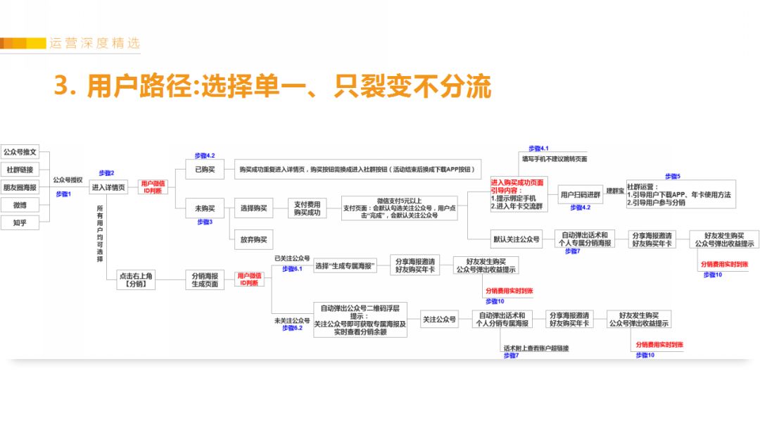 如果某个环节的页面,用户选择太多,宁愿砍掉,也不要在裂变的主路径分流。