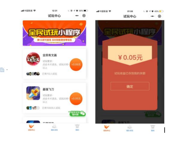 这个小程序本质是个积分墙,我找了几个做不同类型小程序的朋友,把他们的小程序放在上面,用户只要点击进入他们的小程序体验20秒以上,用户就可以获得0.05元红包。