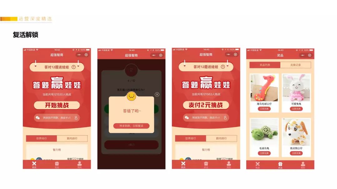 所以这些因为红包裂变来的用户,进入到答题小程序后又可以获得一个红包,这个场景过渡得非常顺畅。我们很多群里的用户都在转发这个小程序,然后通过投其所好,提升整体裂变率。