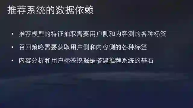 内容分析和用户标签是推荐系统的两大基石。内容分析涉及到机器学习的内容多一些,相比而言,用户标签工程挑战更大。
