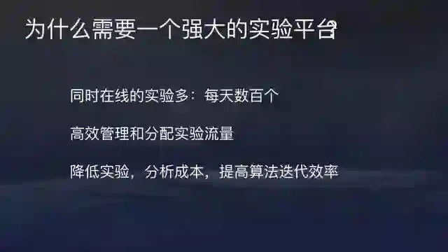 强大的实验平台非常直接的优点是,当同时在线的实验比较多时,可以由平台自动分配流量,无需人工沟通,并且实验结束流量立即回收,提高管理效率。这能帮助公司降低分析成本,加快算法迭代效应,使整个系统的算法优化工作能够快速往前推进。