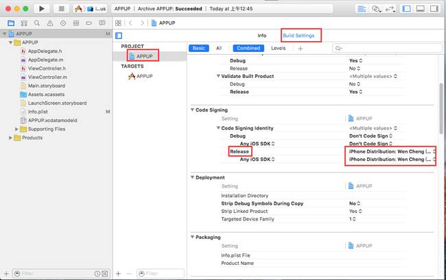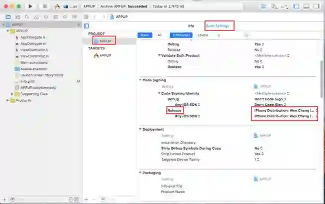选择Code Signing下面的release(发布版)Debugs是测试版,上架App Store选择发布版的。
