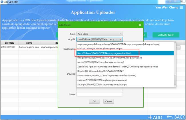 3.3选择APP IDs,之前在开发者中心创建的,这里会自动出现。