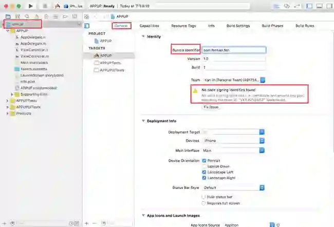 2.1用xocde打开你的项目,点击进入设置证书界面。