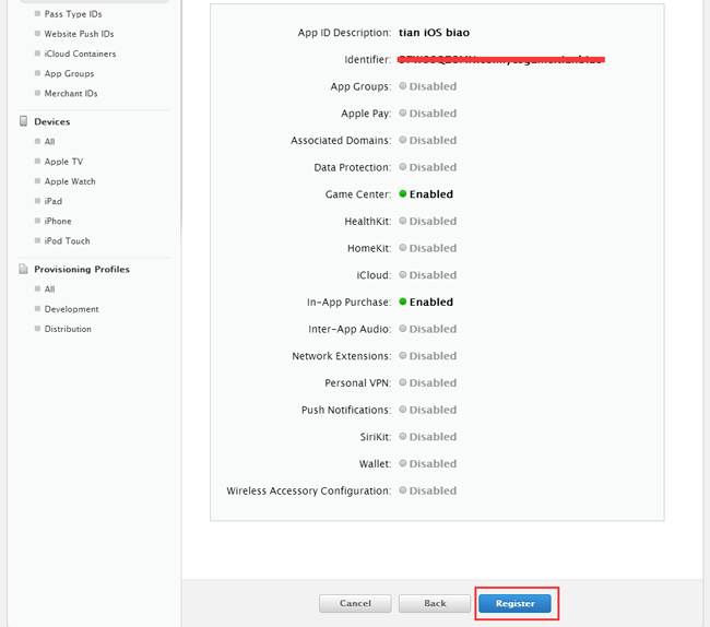 检查下没有错的话直接点击Register后点击Done完成App ID的创建。