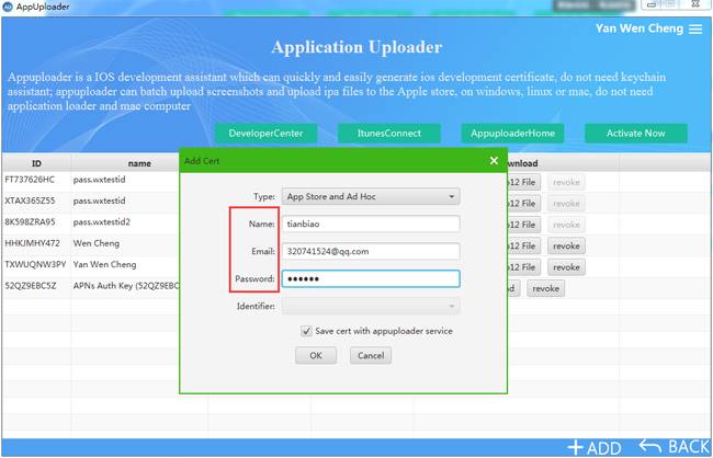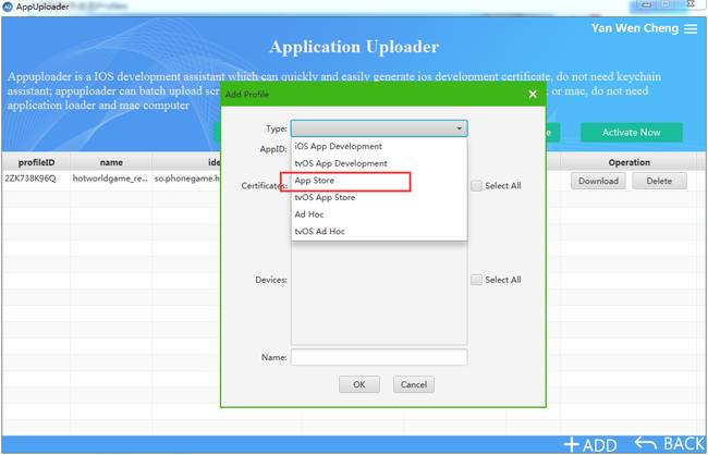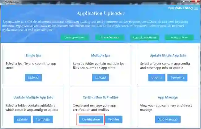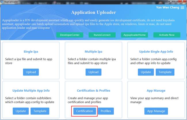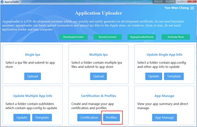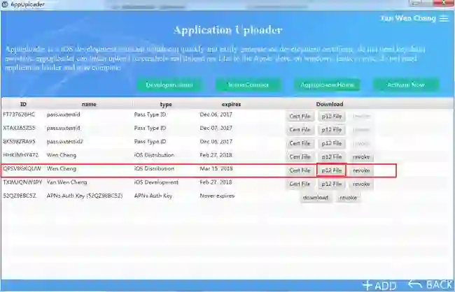 这里使用Appuploader工具,直接申请导出p12证书文件和.mobileprovision描述文件