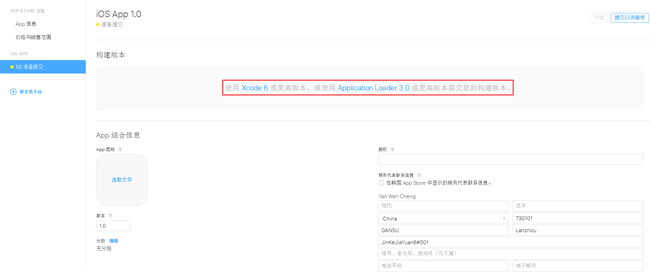 现在APP各项信息都没填写,等下把IPA上传成功了再填写。