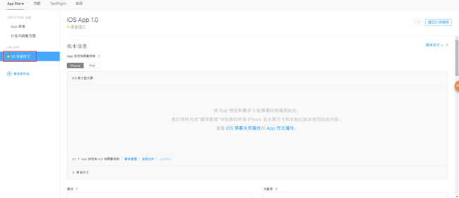 这里构建版本旁边还没有出现+号,后面上传了IPA就会出现,等下会用到。