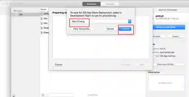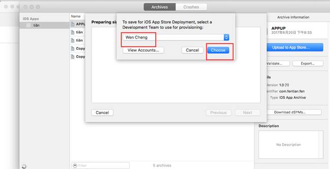 3.4选择你的开发者账号,还没登录会提示你登录,点击Choose,会检查你的证书是否正确。