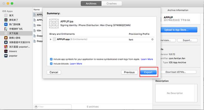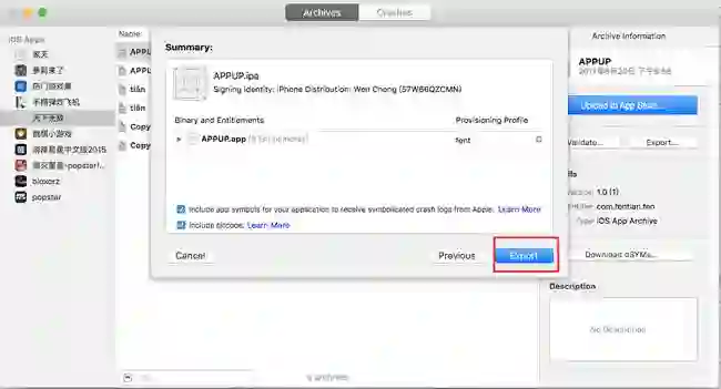 3.5iOS证书检测通过就到了这一步、点击Export,就会导出 一个文件夹,里面就是IPA文件,大功告成了。