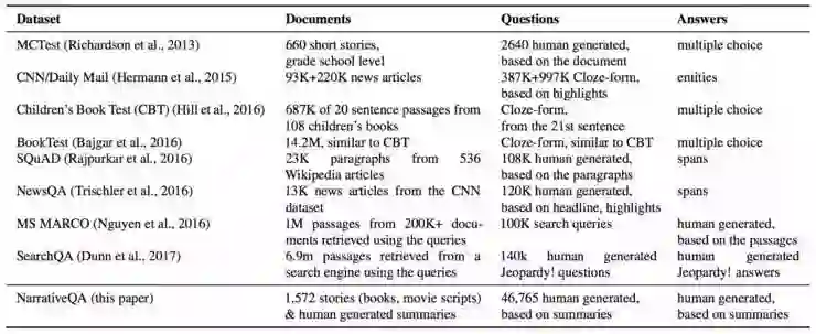 这篇论文基于对完整的电影剧本和书籍的提问和回答,提出了一个具有挑战性的新的问答数据集。虽然依靠当前的方法还无法完成这项任务,但是模型可以选择使用摘要(而不是整本书籍)作为选择答案(而不是生成答案)的语境。这些变体让任务的实现更加容易,也使得模型可以逐步扩展到整个语境设置。