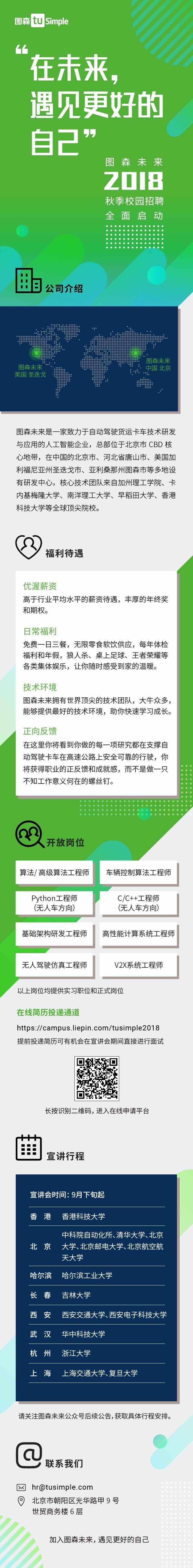 图森未来2018校园招聘宣讲会即将启程!8座城市,14所国内顶尖高校,等你来约!