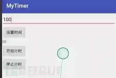 在模拟器中安装并启动MyTimer(此时服务器上的newfile.txt文件为空),从功能上看这只是一个计时器。如下图所示