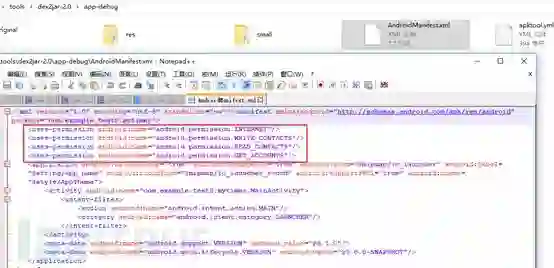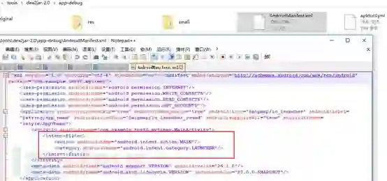 0、使用apktool得到AdroidManifest.xml,使用dex2jar得到应用源码