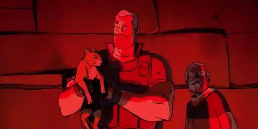 有种罗伯特·谢克里式的贫嘴幽默,细节非常经得起考究,比如机器人的设计来源其实出自「Wall-E」,士兵尸骸枪口插花也是穿越时空的致敬,原本略显俗套的环保说教突然画风骤变,让猫出来扮演大魔王的角色,只能说太懂现代网民的心理了。