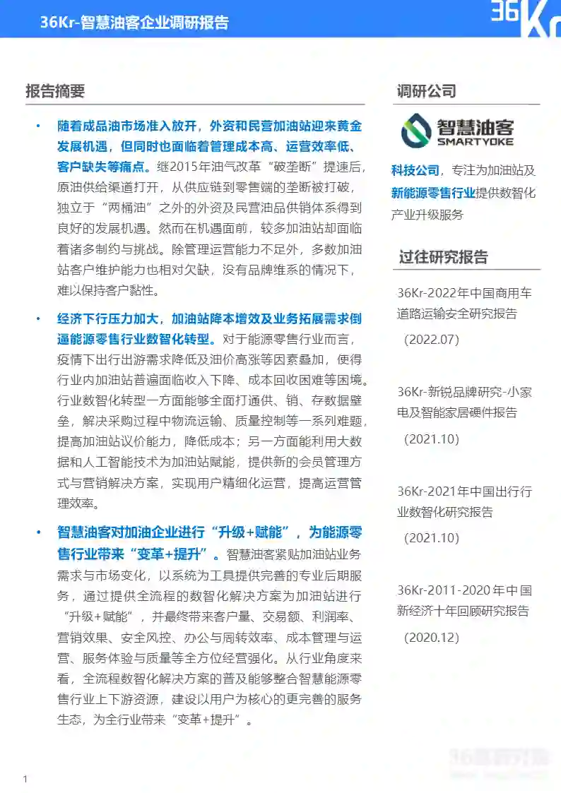 中国能源零售行业数智化升级服务商-智慧油客企业调研报告|36氪研究院