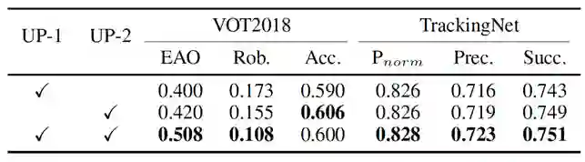 回归分支的特征融合对于跟踪性能的提升也是有帮助的。