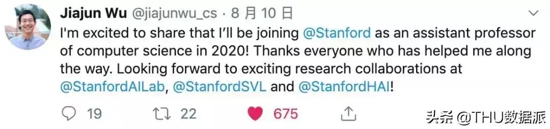 近日,“清华学神”、MIT博士生吴佳俊宣布,他将于2020年加入斯坦福大学担任计算机科学助理教授。