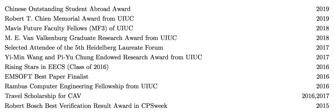 同时,获得了UIUC授予博士生一系列奖项。2018年,她获得中国政府颁发的优秀自费留学生奖学金。