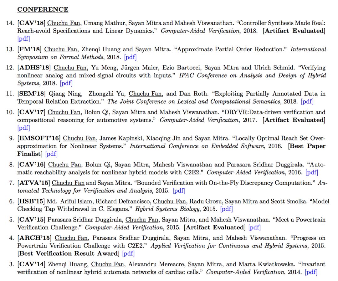 在读期间,她曾开发三个工具,分别是DryVR、C2E2、RealSyn。发表期刊论文和会议论文将近20篇。