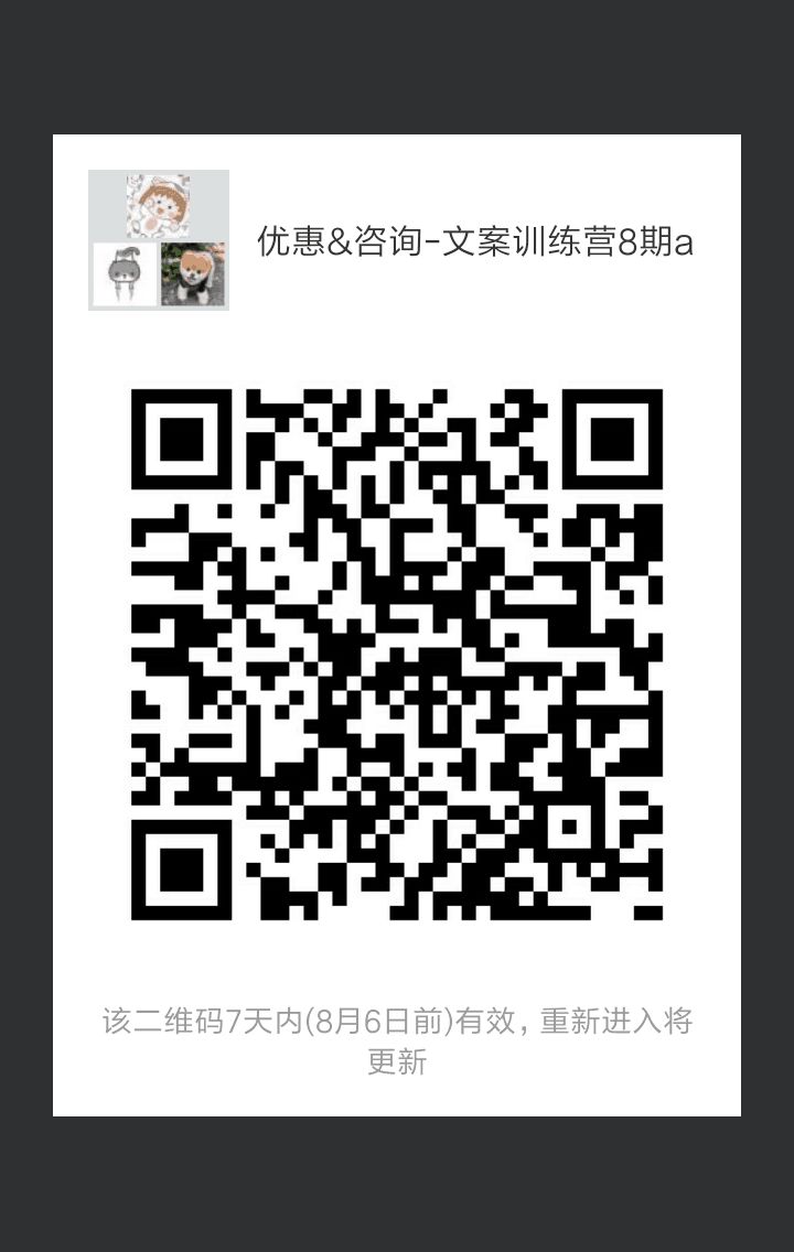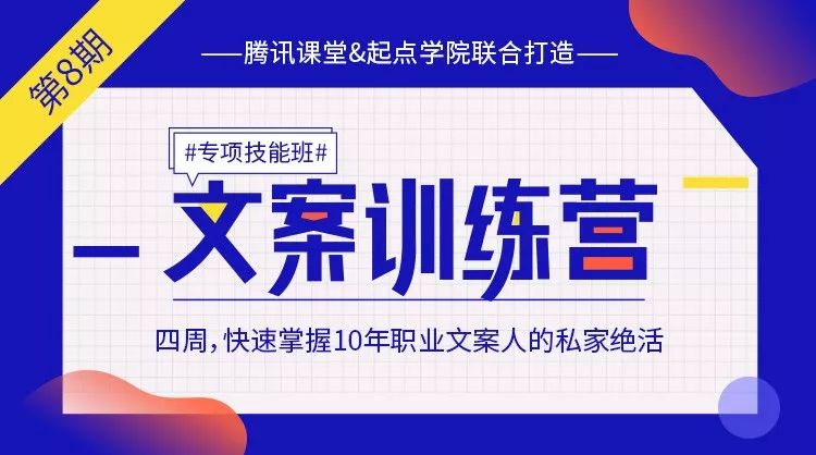 腾讯课堂&起点学院打造的文案训练营第8期开启报名!现在报名有限时优惠喔~