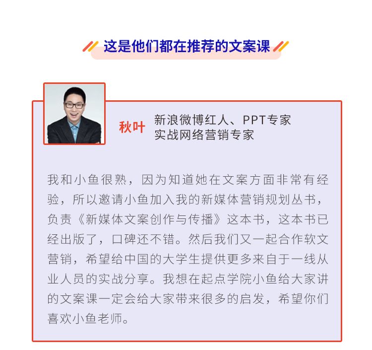 “起点学院&腾讯课堂”联合打造文案训练营,通过4周的系统学习, 11次文案实操,老师的1对1批改和班级群内答疑。