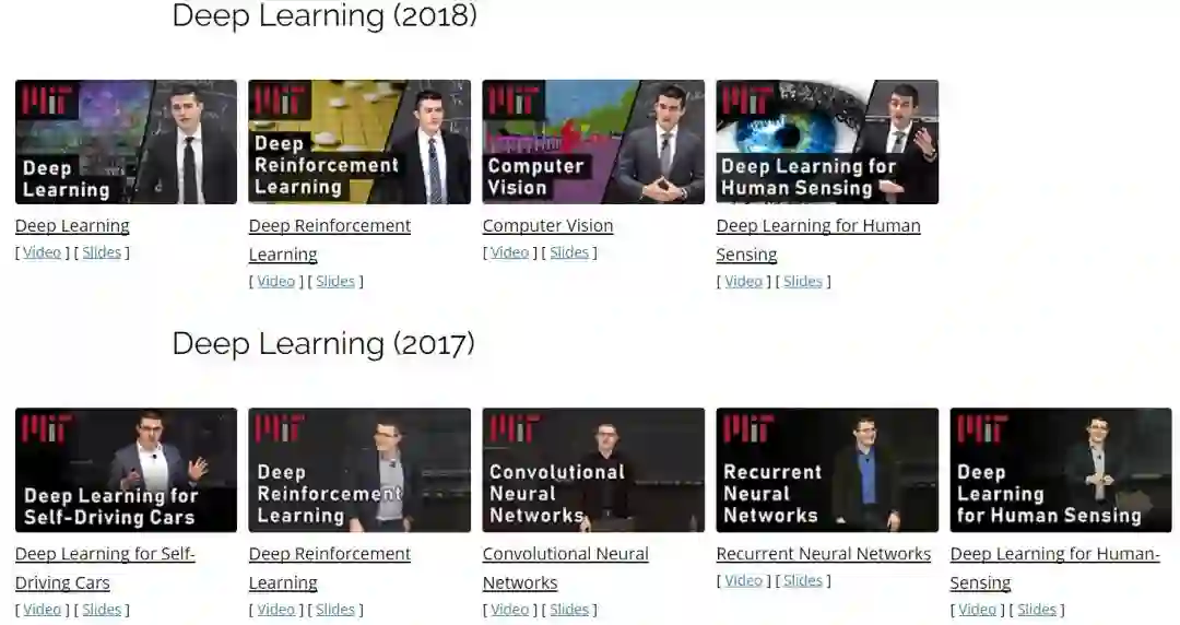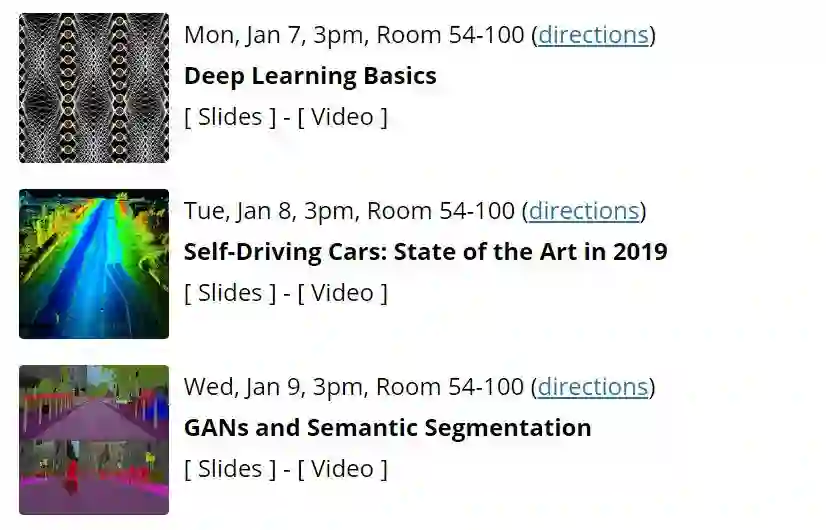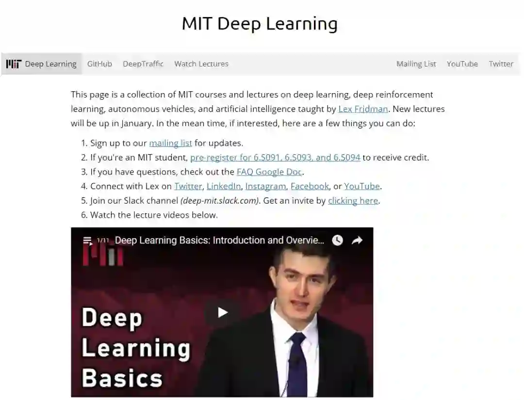 这个网页集合了 MIT 开设的深度学习、深度强化学习、自动驾驶以及人工智能的免费课程和讲座视频,讲师是 Lex Fridman。2019 年的最新视频会在这个月开始陆续更新。