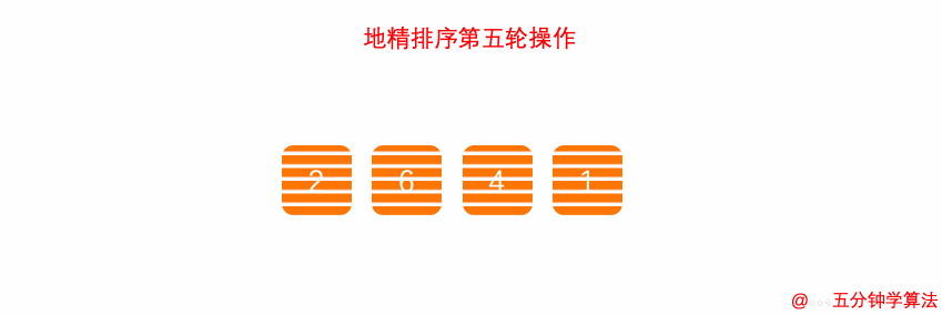 将无序数列:6,2,4,1,5,使用地精排序使其从小到大排序。