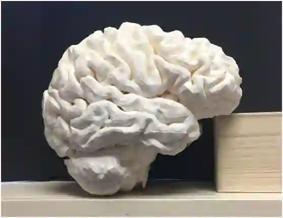 一个 3D 打印的巴雷斯的大脑模型放在他斯坦福大学的办公室里