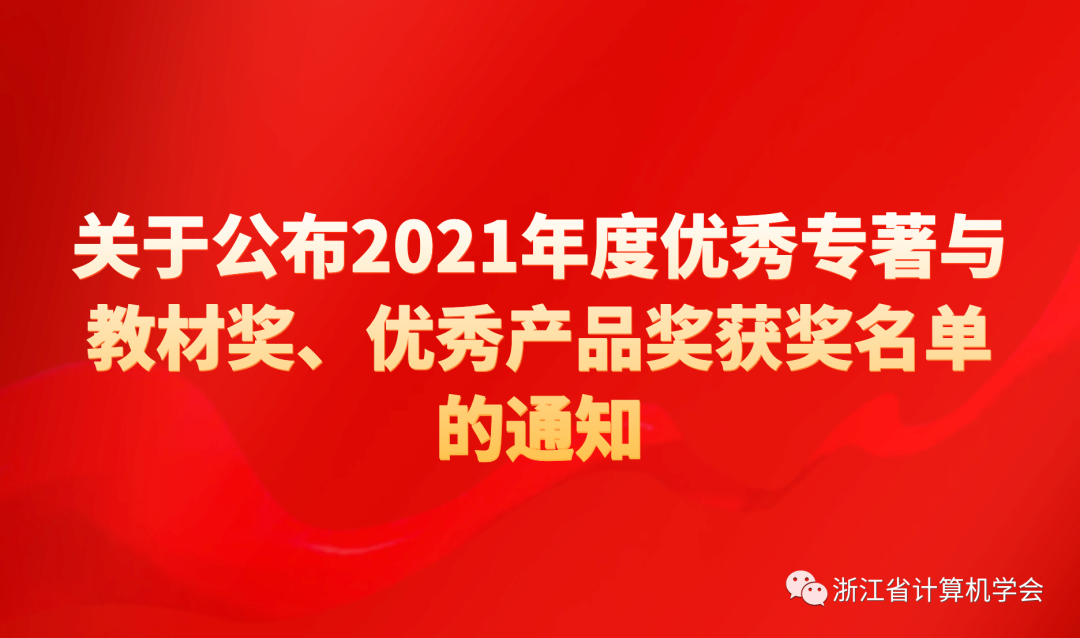 为深入实施“十四五”创新驱动发展战略,推动优秀创新成果和前沿科技落地转化,鼓励学术、产业创新能力和企业核心竞争力提升,为数字经济发展增添新活力、注入新动能,浙江省计算机学会、浙江省计算机行业协会面向全省开展2021年度优秀专著与教材奖、优秀产品奖评选活动。
