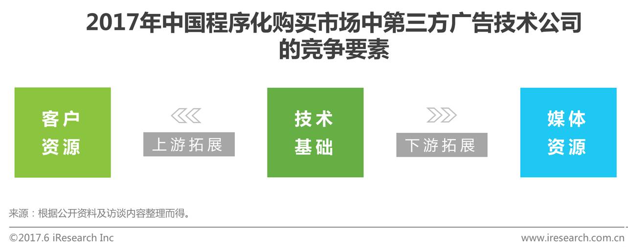 艾瑞分析认为,技术无疑是第三方广告技术公司立足市场的基础,第三方广告技术公司也确实一直在强调自身的技术实力。然而,在当前的网络广告环境下,技术很难能成为竞争取胜的决定性因素:一方面,供需两端——媒体和广告主仍然握有巨大话语权,而第三方广告技术公司的话语权相对较弱;另一方面,技术只有落地到具体的业务场景中,才能发挥价值,数据的积累也同样需要大量业务支撑。因而,在不断提升技术实力的同时,向上拓展客户资源,尤其是细分行业的客户资源,亦或向下拓展媒体资源,尤其是头部的媒体资源,仍然是第三方广告技术公司在市场中保持竞争力的关键。