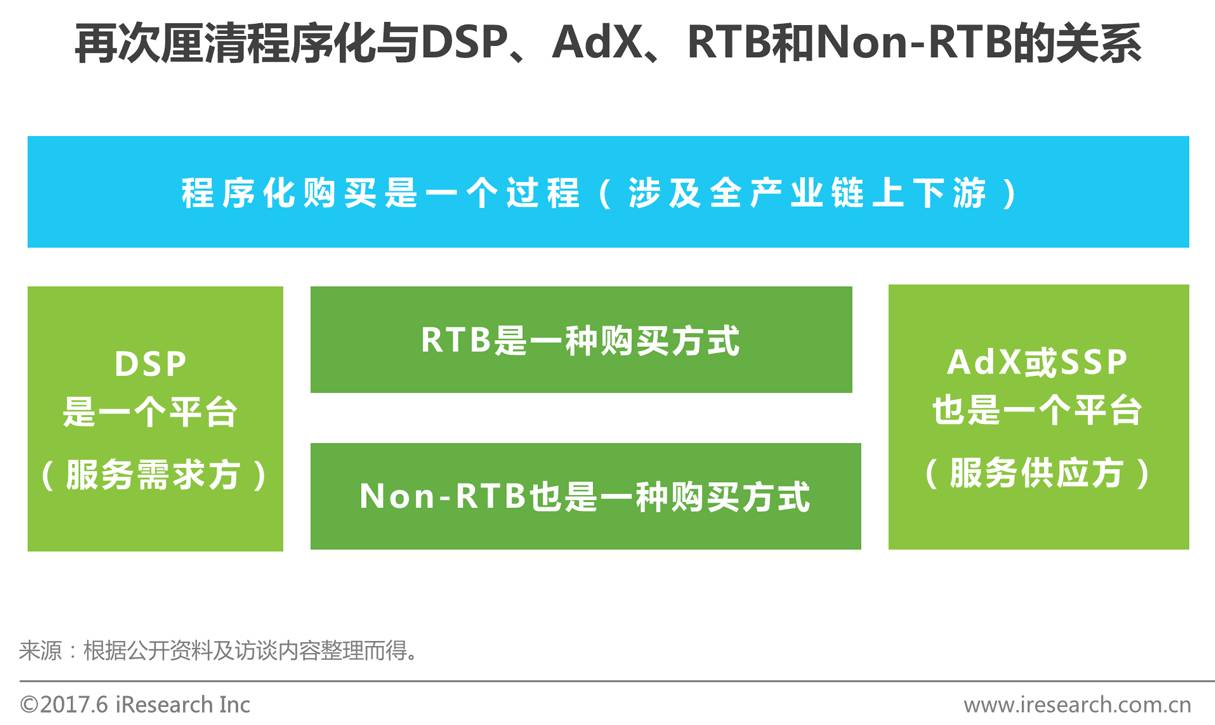 早期,市场对程序化的认知比较模糊,误以为程序化就是DSP,或认为程序化就是RTB。经过5年发展,已经走过混沌期,市场对程序化购买及其与DSP、AdX、RTB和Non-RTB的关系理解更加清晰、更为深入。