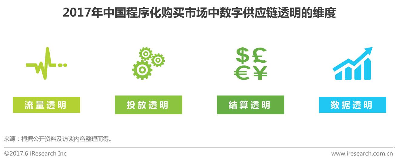 一直以来,在程序化购买过程中,营销服务商负责广告投放过程,广告主根据监测结果,确定是否完成投放KPI,而较少关注广告投放的过程。随着流量作弊和虚假交易等负面问题的爆发,广告主对投放过程更加关注,数字广告供应链的透明性问题凸显。数字广告供应链的透明至少应当包含:流量透明、投放透明、结算透明和数据透明等四个维度。