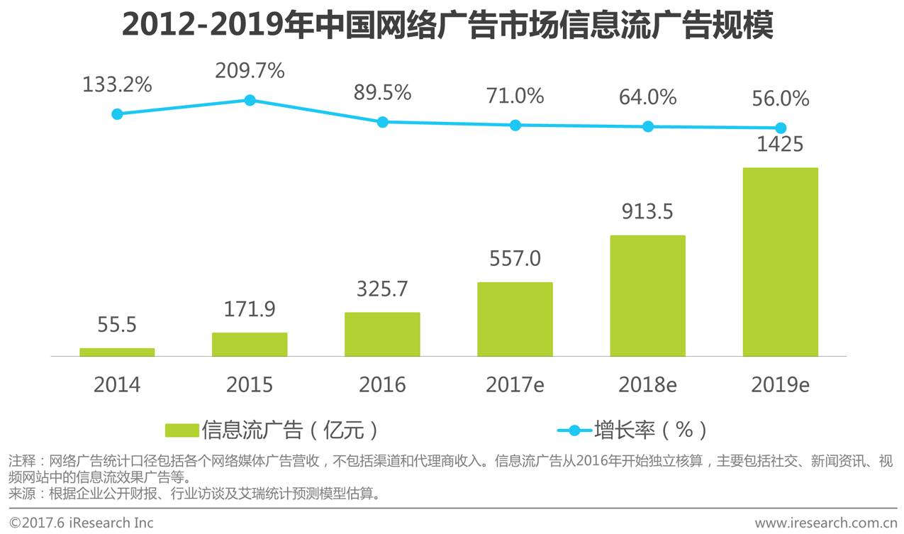 从广告形式角度看,在图文和视频形式广告之后,市场上普遍关注以信息流为代表的原生广告程序化购买。从技术角度看,所有展示类广告都适合通过程序化的方式完成投放,信息流广告亦如此。根据艾瑞预计,2016年信息流广告规模已达325.7亿元,且今后三年均将保持50%以上的增长,这成为信息流广告实现程序化购买的基本面。然而,因为用户对信息流中的广告频次耐受度存在阈值,信息流广告的发展也暗藏广告位资源枯竭的风险,因此,原生广告程序化购买在信息流广告之外,还需要探索更多基于内容原生的新玩法。