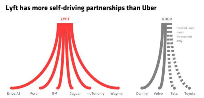 可以看到,Lyft 不但要在打车领域和 Uber 一较高下,在自动驾驶方面也是对 Uber 步步相逼。