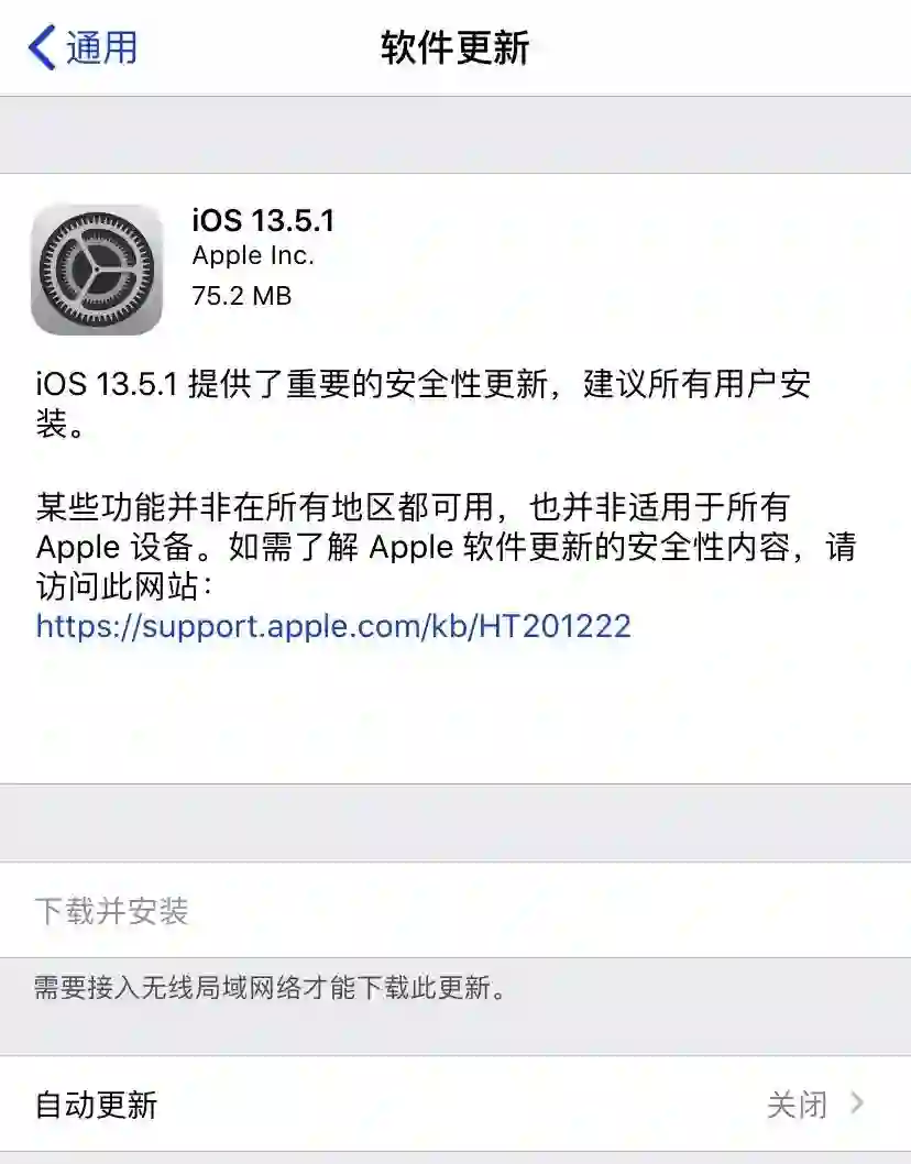 iOS 和 iPadOS 13.5.1 更新目前已经可以通过 OTA 进行。要访问更新,请转至设置>通用>软件更新。