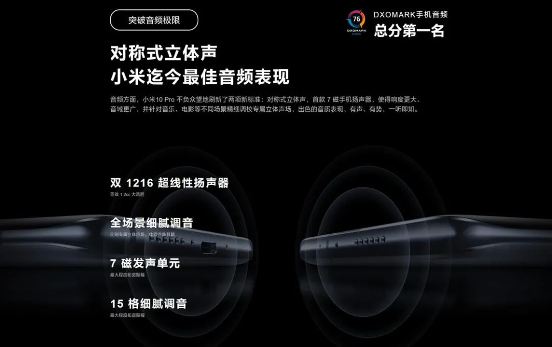 有财大气粗的华为和实力雄厚的 Apple,某评测机构敢给小米 10 Pro 的音频打出 76 分的高分不是没有原因的。