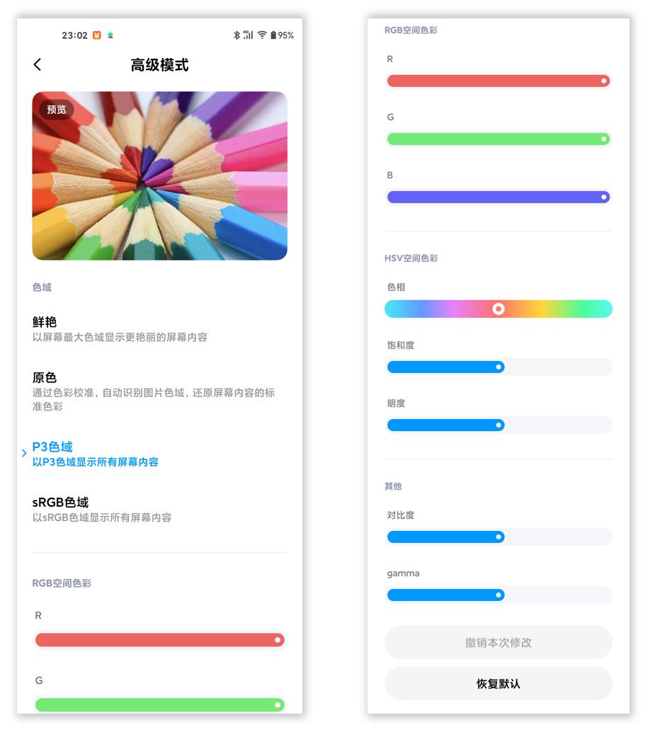 实际使用中则通过内置的、同样对得起「专业」二字的详实自定义设定将屏幕观感的决定权完全交给了用户,提供了包括色域、RGB 空间色彩、HSV 空间色彩、对比度和伽马等等调节选项,保证在内容创作者手中发挥出最大的价值。