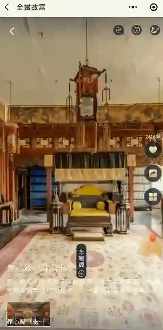 为了弥补这份遗憾,故宫在 2020 年的时候联合腾讯携手推出了「数字故宫」小程序。在这个小程序中,用户不仅可以走进未开放区域看看内景,还可以 360° 近距离观赏故宫的一些珍贵文物,比去现场看得都细致。