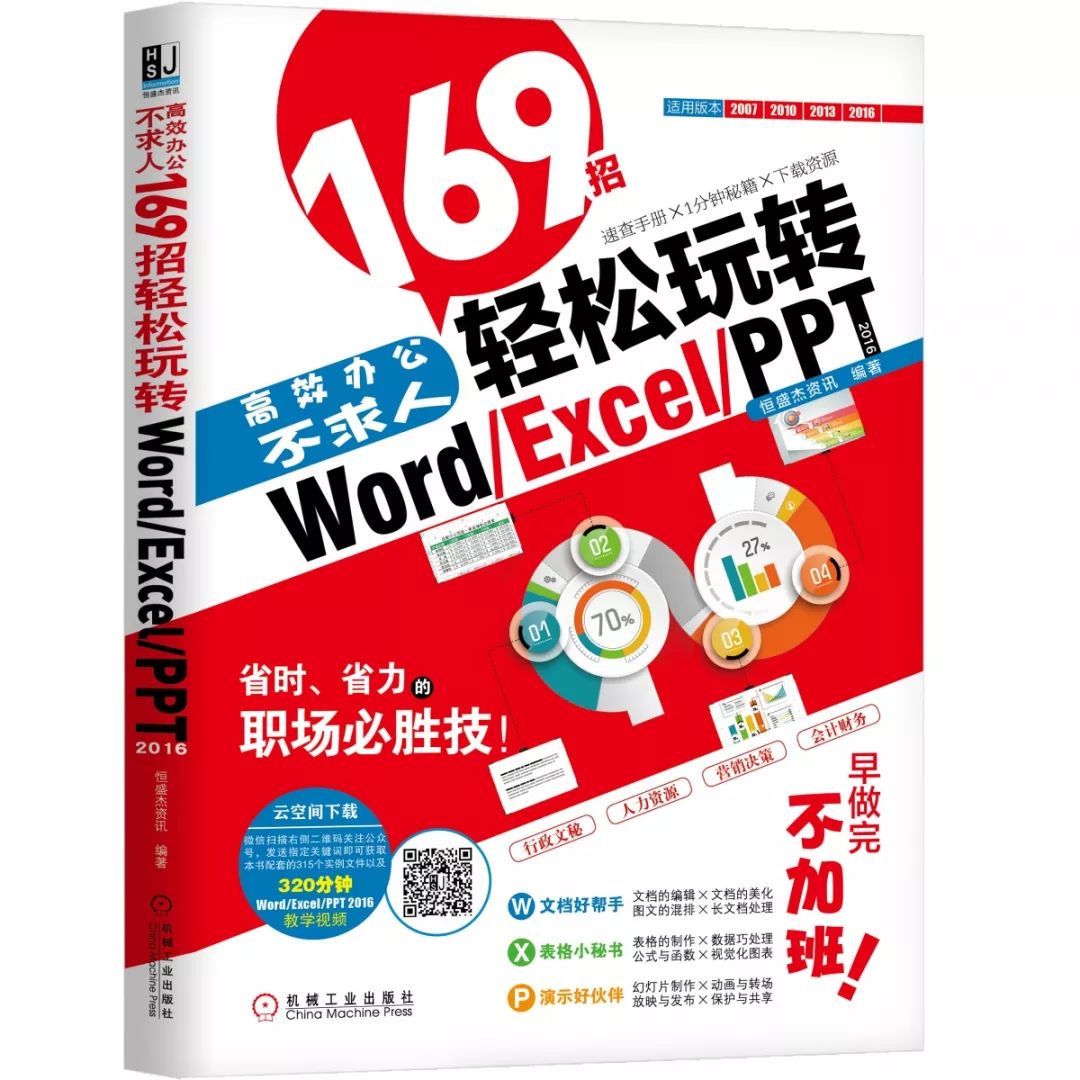 推荐理由:本书从大量日常办公常见问题中总结和提炼出169个实战案例,并简明扼要地进行解析,帮助读者高效而全面地掌握Word、Excel、PowerPoint三大Office组件的操作,快速变身办公达人。