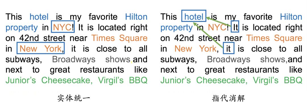 实体统一和指代消解问题相对于前两个问题更具有挑战性。