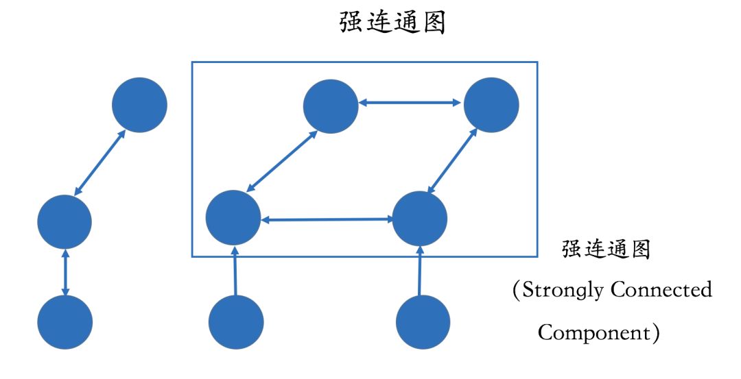 再比如,我们也可以从知识图谱中找出强连通图,并把它标记出来,然后做进一步风险分析。强连通图意味着每一个节点都可以通过某种路径达到其他的点,也就说明这些节点之间有很强的关系。