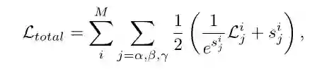 其中的 s 是一种度量不同任务下个体损失的不确定性因子,详细的原理可参见 CVPR 2018 的 Multi-task learning using uncertainty to weigh losses for scene geometry and semantics 关于方差不确定性对于多任务权重的影响分析。
