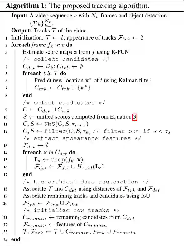 这篇论文表面看上基于 R-FCN 检测框架的 private 多目标跟踪算法,不过与上一篇不同的是,作者只利用 R-FCN 对观测框进行进一步的前景/背景分类,即用于目标框的分类过滤,而且 MOTDT 将检测和跟踪框架分离了。